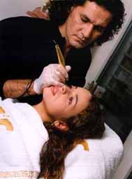 statt. Danach wird das Gesicht gereinigt, die Konturen vorgezeichnet und eine
